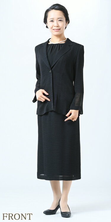 レディース/ブラックフォーマル/喪服/礼服/米沢織波柄ジャガード生地使用/ブラウス付きスーツ/ウェーブカラージャケット/インナーのブラウスは着脱し易いフロントオープン/スリーピース3P/7号/9号/11号/13号/15号/17号
