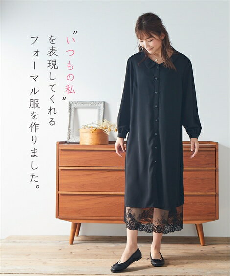 フォーマルウェア レディース 入園 入学 卒園 卒業 ワンピース インナーワンピ付 送料無料 S-8L 大きいサイズ ニッセン cm0 ゆる ナチュラル 2点セット 裾レー