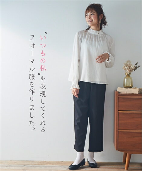 フォーマルウェア・ワンピース(入学式・卒業式用) 【入園・入学・卒園・卒業】袖シャーリングデザインブラウス+ゆるテーパードパンツセットアップ(インナー付)<大きいサイズ有>