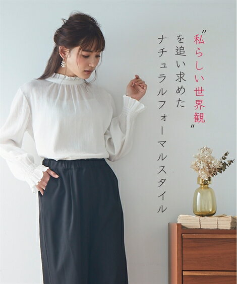 ボウタイ風 タック ブラウス バルーン袖 スーツインナー 白 黒 上品 きれいめ NOUQUE【40代 50代 ファッション】